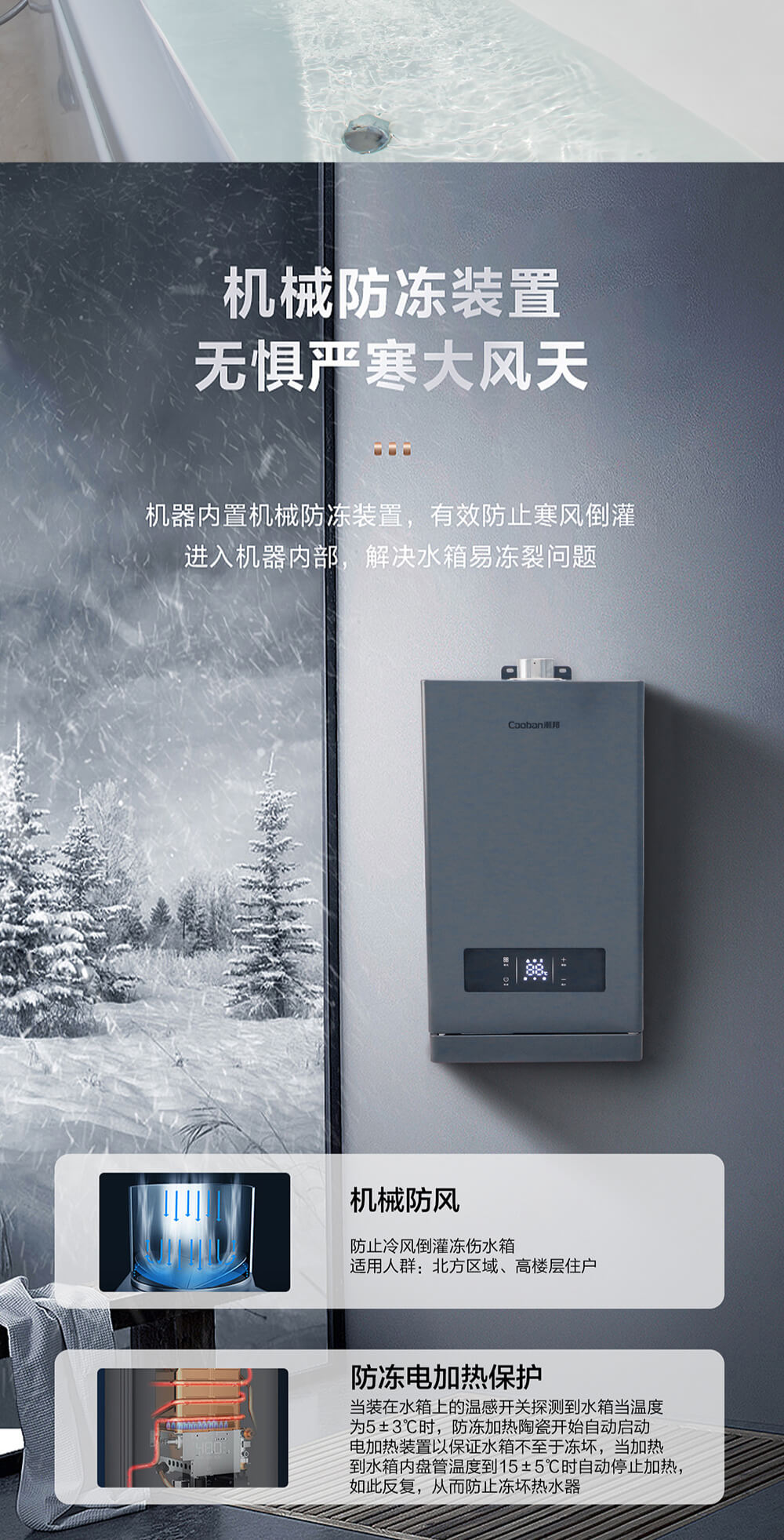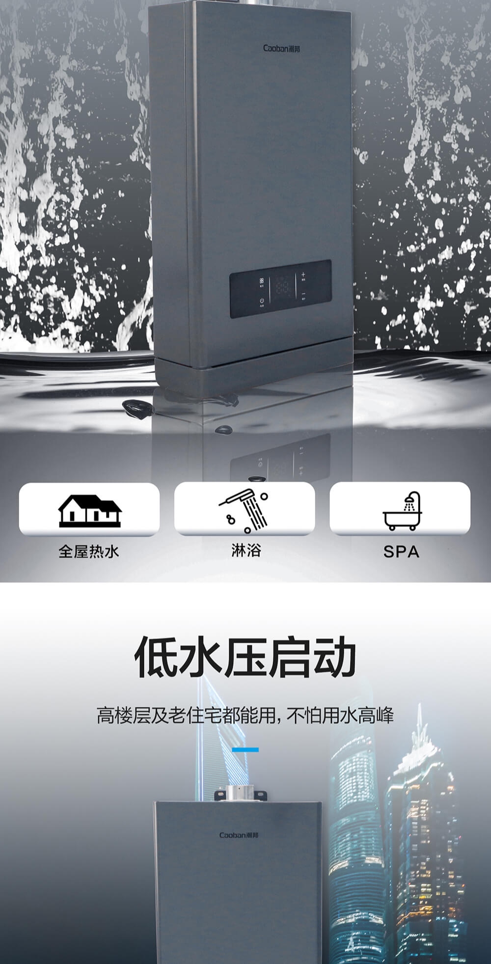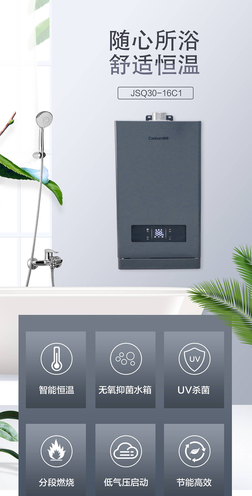 智能恒溫,無氧抑菌水箱,分段燃燒,低氣壓啟動,節(jié)能高效。